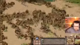 00:23:47Der Streamer ist beeindruckt von den Spielzeiten von Hanno, Sterzig und Ranger bei einer Mission in Stronghold Crusader. Hanno hat die Mission in 26 Minuten, Sterzig in 37 und Ranger in 43 Minuten abgeschlossen. Sein Ziel ist es, mindestens so schnell zu sein wie einer der drei. Um dies zu erreichen, startet er die Mission 'Der Pfad des Lams', bei der er alleine gegen zwei Gegner antreten muss.