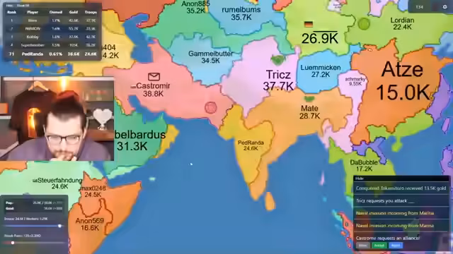 00:08:29Es herrscht eine intensive Phase im Spiel, in der der Streamer von verschiedenen Seiten angegriffen wird und versucht, sich zu verteidigen und Verbündete zu unterstützen. Es kommt zu unerwarteten Angriffen und Bündnisbrüchen, was die Situation zusätzlich verkompliziert. Der Streamer betont die Wichtigkeit, Verbündeten zu helfen und sie zu unterstützen, um gemeinsam stärker zu sein. Es wird ein besonderes Augenmerk auf die Unterstützung von 'Fridolin' gelegt, dessen Insel angegriffen wird. Der Streamer ruft dazu auf, gemeinsam gegen den gemeinsamen Feind, die 'Steuerfahndung', vorzugehen und diese zu eliminieren. Es wird eine Allianz mit Bots eingegangen, um die 'Steuerfahndung' zu bekämpfen. Der Streamer betont, dass er nicht mit jedem befreundet sein kann und dass es wichtig ist, strategische Entscheidungen zu treffen, um im Spiel erfolgreich zu sein. Es kommt zu einem versehentlichen Bündnisbruch, was für Verwirrung sorgt und die Notwendigkeit von Verteidigungsmaßnahmen unterstreicht. Die 'Steuerfahndung' wird als gemeinsamer Feind identifiziert, gegen den alle zusammenarbeiten sollen.