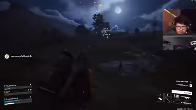 03:39:04Nach einer kurzen Pause kehrt die Gruppe ins Spiel zurück und findet sich in einer späten Spawn-Position in der Nähe des 'Hains' wieder, wo bereits Schüsse zu hören sind. Sie vermuten, dass Gegner im 'Fort' oder 'Dorf' kämpfen. Ein Spieler wird gesichtet und verfolgt, wobei die Gruppe versucht, ihn zu flankieren. Es kommt zu einem Feuergefecht, bei dem ein Gegner schwer beschädigt wird. Die Situation wird kompliziert, als ein weiteres Team von hinten auftaucht und die Gruppe in die Zange nimmt. Trotz eines Versuchs, sich zurückzuziehen und zu heilen, werden die Spieler nacheinander ausgeschaltet. Die Niederlage wird auf zu aggressives Vorgehen und das Unterschätzen der dritten Partei zurückgeführt. Die Streamer diskutieren auch über die Problematik von Spielen, die mit politischen oder militärischen Organisationen in Verbindung gebracht werden, und äußern ihre Bedenken, solche Spiele im Stream zu spielen.