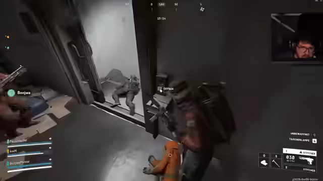 03:24:21Die Spieler befinden sich in einem intensiven Feuergefecht und versuchen, die Positionen der Gegner zu klären. Ein Spieler wird gedownt, und die Gruppe überlegt, ob sie aggressiv pushen oder sich zurückziehen sollen. Die Kommunikation mit anderen Spielern wird aufgenommen, um Informationen über deren Ausrüstung und Absichten zu erhalten. Es wird eine Pumpgun und Granaten ausgetauscht, um die Kampfkraft zu erhöhen. Die Gruppe versucht, die Gegner zu flankieren und zu überraschen. Trotz einiger Rückschläge und knapper Situationen gelingt es ihnen, weitere Gegner auszuschalten und ihre Position zu verteidigen. Die strategische Nutzung von Türen und Deckungen ist entscheidend für ihr Überleben.
