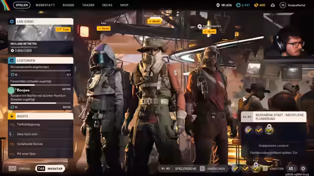 02:55:26Nach dem intensiven Kampf beschließt die Gruppe, sich zurückzuziehen, um ihre Vorräte aufzufüllen. Es wird über die Band Future Palace gesprochen, die als deutsche Band identifiziert wird und deren Musik als intensiv beschrieben wird. Die Spieler finden Bastion-Zellen, die viele Advanced Components liefern, und diskutieren Upgrades. Ein Spieler muss den Stream bald verlassen, was die Planung für weitere Runden beeinflusst. Sie planen, auf der Karte Stella weiterzuspielen und überlegen, welche Ausrüstung sie benötigen. Die Diskussion dreht sich auch um die Nacht-Rates auf Stella, die als besonders herausfordernd beschrieben werden.