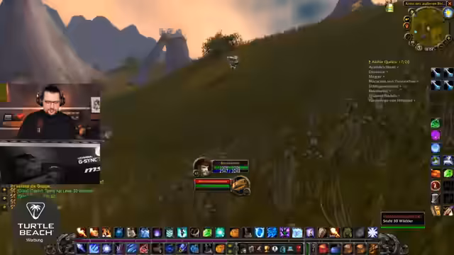 01:40:36Während des Gameplays beobachtet der Streamer einen Clip eines anderen Spielers (Leon Aue) und stößt dabei auf einen fragwürdigen PvP-Vorfall. Ein Hunter wird scheinbar durch "Social Aggro" aus der Ferne angegriffen, was den Streamer als "krass" und "nicht legit" beschreibt. Dies führt zu einer ausführlichen Analyse der Spielmechanik und der Spielumgebung. Parallel dazu werden eventuelle Pläne für einen Mount-Farm und die persönlichen Ziele, wie ein potenzieller Speedrun bei einem Tod, angesprochen.
