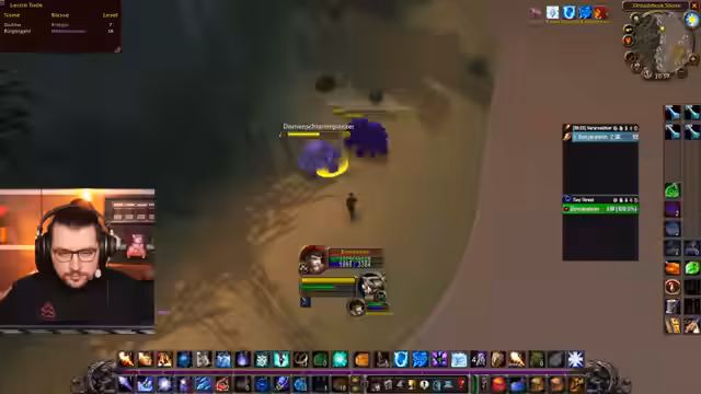 05:38:58Der Streamer nimmt eine Quest an, die das Töten eines speziellen Mobs, eines Kuriers, erfordert. Zusammen mit einem anderen Spieler macht er sich auf, diese Quest zu erfüllen. Nachdem der Mob erfolgreich besiegt wurde, wird der Streamer gebeten, einer spontan entstehenden Gruppe für den Schlingendorn-Tal beizutreten. Er ist einverstanden, stößt aber zunächst zu einer anderen Gruppe bei, bevor er sich der neuen, kurzfristig zusammengestellten Truppe für den Dungeon anschließt.