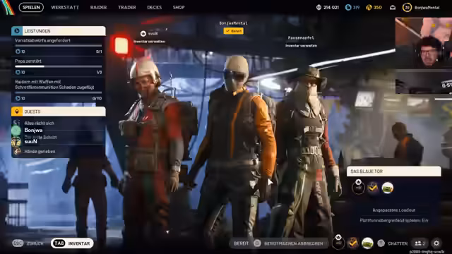 00:00:00Der Stream beginnt mit einem Raid und einer entspannten Atmosphäre nach einem LAN-Tag. Der Streamer, bonjwachill, begrüßt die Zuschauer und kündigt einen "Nachtschicht nach LAN Tag 1 mit Matteo" an. Schnell wird klar, dass weitere Spieler gesucht werden, da Leon, ein ursprünglich geplanter Teilnehmer, nicht online ist. Stattdessen wird Lynn eingeladen, der sofort annimmt und dem Discord-Server beitritt. Die Gruppe diskutiert kurz über die Spielpräferenzen und entscheidet sich für eine Warm-Up-Runde, wobei sie sich über die Schwierigkeiten des Farmens und die zunehmende Aggressivität anderer Spieler austauschen. Sie bereiten sich auf den gemeinsamen Spielabend vor und klären technische Details, wie die Aktivierung des Crossplays, das bei einem Teammitglied deaktiviert war.