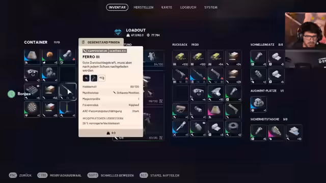 00:14:25Nach einer intensiven ersten Runde bereitet sich das Team auf den nächsten Raid vor. Sie besprechen die Wahl der Karte und entscheiden sich für eine normale Runde mit Waffen, da die Hardcore-Action in den früheren Gebieten zu riskant war. Die Spieler überprüfen ihre Loadouts, nehmen Minen und Granaten mit und überlegen, ob sie Defibrillatoren einpacken sollen, um sich gegenseitig wiederbeleben zu können. Sie diskutieren auch über die Möglichkeit, einen Key mitzunehmen, um bei einem späten Spawn nicht in die Mitte des Geschehens laufen zu müssen. Die Venator wird als Meta-Waffe identifiziert, und die Spieler tauschen sich über ihre Erfahrungen mit Bauplänen und Komponenten aus. Eine Wette über das Überleben aller drei Spieler wird eröffnet, was die Stimmung zusätzlich anheizt.