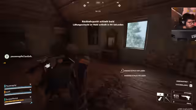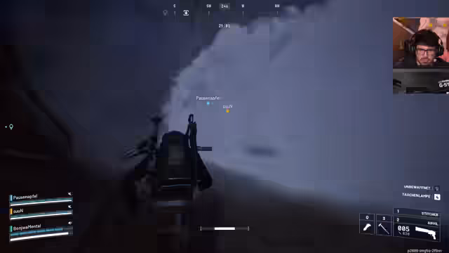 04:27:07Die Spieler befinden sich in einem intensiven Feuergefecht, bei dem ein Gegner entdeckt und markiert wird. Trotz fehlender Treffer gelingt es, den Schild des Gegners zu durchbrechen, was die Möglichkeit für einen aggressiven Vorstoß eröffnet. Das Team koordiniert sich, um den isolierten Gegner auszuschalten, während ein weiterer Feind in der Nähe identifiziert wird. Die Kommunikation ist entscheidend, um die Positionen der Feinde zu verfolgen und gezielte Angriffe zu starten. Die Spieler müssen schnell auf neue Bedrohungen reagieren und ihre Taktiken anpassen, um in der dynamischen Kampfsituation zu bestehen. Ein Spieler wird getroffen und muss heilen, während das Team versucht, die Kontrolle über das Gebiet zu behalten und die verbleibenden Gegner zu eliminieren. Die Situation bleibt angespannt, da unklar ist, wie viele Gegner noch vorhanden sind und woher weitere Angriffe kommen könnten.