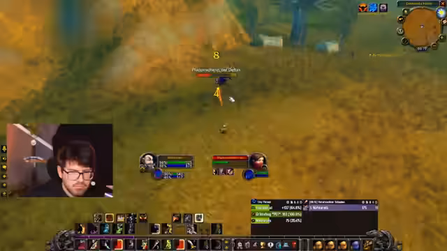 01:15:00Der Streamer kämpft gegen mehrere Mobs, erlebt knappe Todesfälle und wird von anderen Spielern gerettet. Es folgen Experimente mit Kiting, Auto-Attack-Makros und Zoom-Einstellungen. Zuschauer empfehlen Add-ons wie Tidyplates und Plater für bessere Übersicht. Diskussionen über Loot-Management, Waffentrainer und die Nutzung von Heiltränken unterstreichen die Herausforderungen des Solo-Spiels auf Hardcore-Servern.