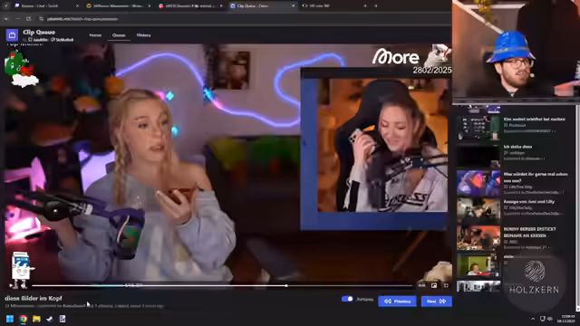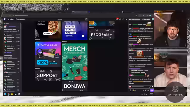 01:54:13Es wurden Verbesserungen am Technik-Setup vorgestellt, darunter die Verwendung eines Handys als Kamera über VideoNinja, was als potenzieller 'Mini-Game-Changer' bezeichnet wird. Maurice und Hamo werden für die Studiotechnik-Einrichtung gelobt. Diskutiert werden auch technische Probleme wie Pufferungsissues beim Twitch-Stream, die seit Wochen auftreten. Nach Tests mit verschiedenen Browsern und Einstellungen (z.B. 7TV deaktivieren, 720p) wurde beschlossen, dass es sich um ein globales Problem handelt. Zusätzlich gab es Probleme mit der Maus- und Bildwiederholungsrate beim Start von 'Routine', die durch V-Sync und FPS-Einstellungen behoben wurden.