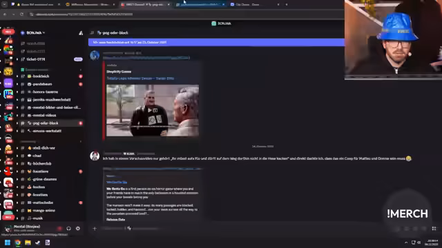 01:35:10Niklas' Spiel 'Warner's Red' wird thematisiert, das von einigen im Stream gespielt wurde, während andere Kritik übten, es sei ein Abklatsch eines anderen Spiels. Es wird erklärt, dass es sich um ein eigenständiges Projekt handelt, dessen Sounddesign und Musik (von Kim und Franzi) gelobt werden. Die Stimmen der Charaktere wurden teilweise von Lilly (Bogenschützen) und anderen rekrutiert, da Niklas' Stimme nicht ideal für alle Rollen war. Es wird betont, wie aufwendig die Spielentwicklung ist – umfasst dies Programmierung, 3D-Modellierung, Texturierung, Animation und Sounddesign – und dass Niklas jahrelang unbezahlt daran arbeitete. Die Entscheidung, das Spiel nach einem kleineren Scope (nach einem Vorprojekt) fertigzustellen, wird verteidigt.