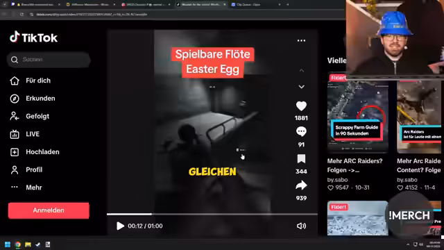 04:28:46Matteo entdeckt ein Easter Egg in Arc Raiders, bei dem eine Flöte durch spezielle Aktionen eine geheime Melodie freischaltet. Durch das Zerstören der Flöte mit einem Anvil und erneutes Aufheben kann man neue Töne spielen und 500 XP erhalten. Das Easter Egg wurde von einem Zuschauer (Mr. 27 Cent) identifiziert.