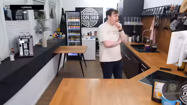 00:17:47Marco experimentiert mit seiner Technik und entdeckt, dass er sein Telefon zur Steuerung nutzen kann, was alles entspannter macht. Er begrüßt die Zuschauer und stellt fest, dass sie den zweiten Advent hinter sich haben, und erkundigt sich nach deren Weihnachtsstimmung. Während er Wasser in die Kaffeemaschine füllt, bemerkt er, dass die Bohnen zur Neige gehen, und erwähnt, dass Papa Wallaby bereits in Weihnachtsstimmung ist. Anschließend isst er Weihnachtskekse und überlegt, ob es Rabattcodes für Bonfire gibt, während er auf ein T-Shirt anspielt, das er trägt.