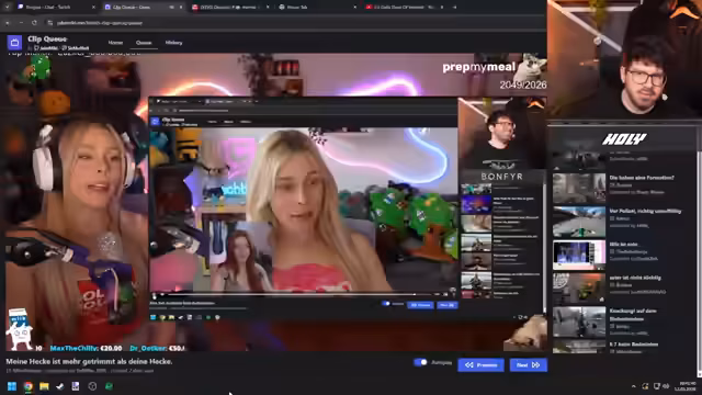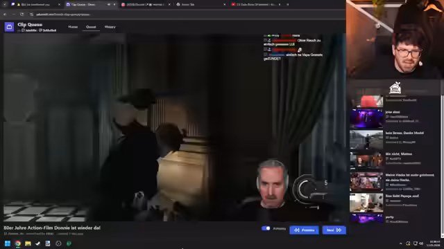 05:32:48Eine persönliche Anekdote über eine unangenehme Begegnung in einem Supermarkt wird geschildert. Der Streamer beschreibt, wie er von einer älteren Dame angesprochen und wegen eines vermeintlichen Fehlverhaltens zur Rede gestellt wurde. Der Clip-Queue wird genutzt, um auf Community-Inhalte zu reagieren, einschließlich Clips von Franzi, Soon und anderen. Die Interaktion mit der Community und das Vorlesen von Nachrichten nehmen viel Raum ein.