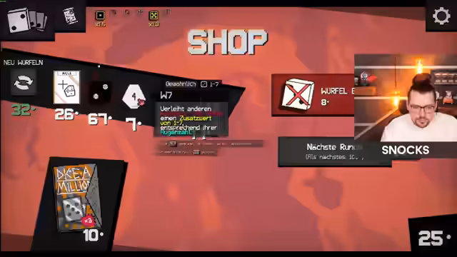 00:02:52Nach einer längeren Diskussion über interne Gaming-Themen stellt der Streamer das neue Rougelite-Würfelspiel Dice Millions vor. Das Spiel basiert auf dem Sammeln von Würfeln mit unterschiedlichen Eigenschaften und dem Bezahlen einer Quote, um Belohnungen zu erhalten. Der Streamer beginnt seine erste Spielrunde und erkundet die Mechaniken. Er erhält erste Würfel wie die Kronkorken und den Gerade-Würfel und versucht, ein erstesSetUp zu finden, das auf gerade Zahlen aufbaut, was im weiteren Spielverlauf eine zentrale Strategie darstellt.