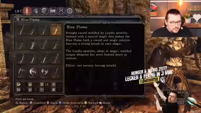 03:21:01Nachdem die Spielmechaniken von Dark Souls 2, insbesondere die mangelnde Invincibilität nach Angriffen, kritisch hinterfragt werden, beginnt der Streamer mit der tiefgehenden Erkundung des ersten DLCs. Er stellt fest, dass der DLC deutlich anspruchsvoller ist als das Hauptspiel und testet verschiedene Waffen wie die Blue Flame, die er auf ihre Tauglichkeit für einen Magier prüft. Dabei analysiert er verschiedene Upgrades und Infusionen, um den maximalen Schaden zu erzielen, und diskutiert die Vor- und Nachteile der verschiedenen Optionen.