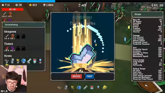 00:00:00Der Stream beginnt mit dem Einstieg in das Spiel, wobei der Fokus auf der Bewertung verschiedener Items liegt. Besonders hoch im Kurs stehen Epische Items, die als entscheidend für den Sieg angesehen werden, während der Schild als weniger nützlich eingestuft wird. Der Spieler diskutiert intensiv die Bedeutung von Waffenleveln gegenüber Tomb-Skills und wählt Items basierend auf ihrer Synergie mit dem Build, wie z.B. Pickup-Range, um das Farmen zu optimieren und ein schnelles Leveln zu ermöglichen. Die Aura wird als unattraktiv abgetan, da zu wenige Magneten im Spiel vorkommen.