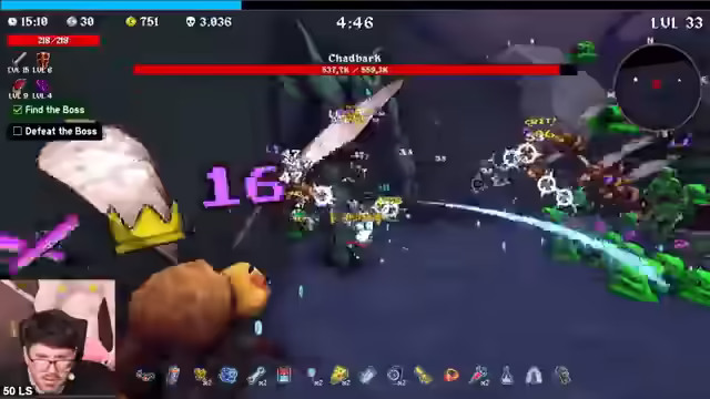 00:08:26Der Fokus liegt auf dem Überleben und dem Farmen von Kohle. Knockback wird als zweischneidig betrachtet, und der Streamer nimmt eine Challenge an, um den Schwierigkeitsgrad zu erhöhen. Er will den aktuellen Run nicht "wegwerfen", da er Potenzial sieht. Es beginnt eine intensive Suche nach dem Boss, wobei die Zeit drängt und der Wind als Hinweis dient. Der Streamer findet Thorns und ein Item, das die Zeit einfriert, wenn er tödlichen Schaden erleidet. Er äußert Ungläubigkeit über sein Glück und befürchtet, den Boss aufgrund der Suche nicht mehr rechtzeitig zu finden. Trotz eines starken Builds und erhöhtem Damage während des Springens, wird der Boss zunächst verfehlt. In letzter Sekunde wird der Boss doch noch gefunden und besiegt.