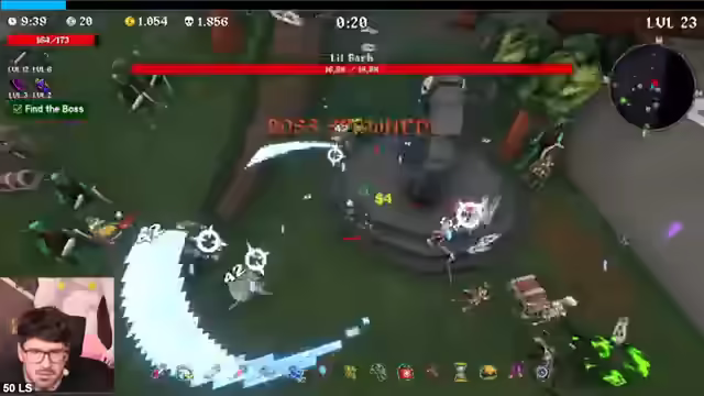 00:17:11Der Streamer startet einen zweiten Run und analysiert seinen Build. Er diskutiert Attack Speed und Crit Damage, wobei er feststellt, dass er nur 6% Crit Chance hat. Er fühlt sich langsam und bemerkt, dass die Ansicht weiter herausgezoomt ist. Das Spiel wird als "Vampire Survive in 3D" beschrieben. Movement Speed wird als größtes Problem identifiziert. Er erinnert sich an frühere Schwierigkeiten mit dem Boss und stellt fest, dass er diesmal mehr Schaden verursacht. Er plant, ein Item für den Boss aufzuheben und Damage zu farmen, um seinen Build zu verbessern. Er überlegt, wann der richtige Zeitpunkt ist, den Boss zu beschwören, um nicht zu schwach oder zu spät zu sein. Er stirbt und nutzt einen Stop-Freeze, um zu überleben, erkennt aber, dass er gegen einen Golem und nicht den eigentlichen Boss gekämpft hat. Er kommt zu dem Schluss, dass er Lifesteal benötigt.