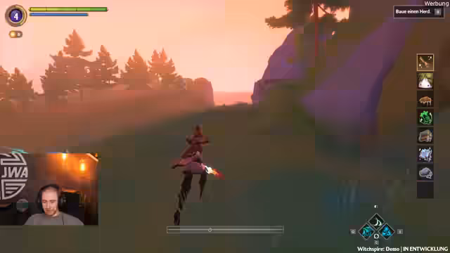 03:06:56Nach dem Verlust seines Drachen konzentriert sich der Streamer darauf, allein in der Welt zu überleben. Er muss lernen, sich zu heilen, und stellt fest, dass er seinen Herd nicht mehr bauen kann, was auf einen Bug hindeutet. Ein Entwickler des Spiels meldet sich im Stream und empfiehlt, den Charakter neu einzuloggen, um die verbuggte Quest zu umgehen. Der Streamer folgt diesem Ratschlag und kann sein Tutorial fortsetzen. Nachdem er seinen Herd erfolgreich aufgewertet hat, kämpft er sich durch eine Gruppe von Gegnern und findet wertvolle Beute, was ihm neuen Mut gibt.