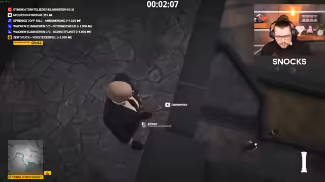 04:37:10Der Stream wechselt das Genre und startet den 'Hitman: Freelancer'-Modus, einen Roguelike-Modus, in dem zufällige Missionen absolviert werden müssen, ohne dabei entdeckt zu werden. Er wählt den 'Waffenhandel' als Startoption und landet auf der Map 'Marrakesch'. Das Ziel ist es, Wachen zu eliminieren und einen Waffenhändler zu finden, von dem man Ausrüstung kaufen kann. Die Mission gestaltet sich schwierig, da der Streamer in einem gesperrten Gebiet spawn und sofort Aufmerksamkeit auf sich zieht.