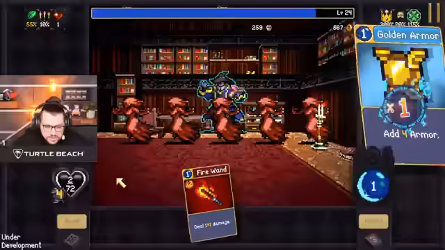 06:17:36Der Streamer steht vor einem Bosskampf in Vampire Survivors, bei dem er nur noch über sehr wenige Trefferpunkte verfügt und mit einer starken Combo von Karten überleben muss. Er nutzt Karten wie 'Empty Tome', um Mana zu gewinnen, und 'Garlic' und 'Hellfire', um massiven Schaden zu verursachen. Die Situation ist extrem knapp, und der Streamer kämpft darum, Armor zu sammeln und die Runde zu überleben. Letztendlich gelingt es ihm durch eine geschickte Nutzung seiner Karten und ein wenig Glück, den Boss zu besiegen und knapp mit 3 HP zu überleben.