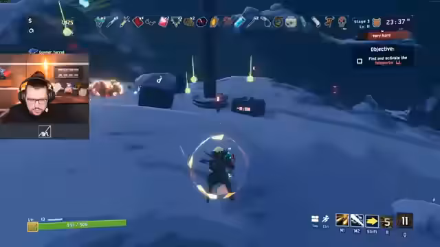 01:50:45Der Streamer erkundet eine Spielwelt, die stark an Resident Evil erinnert, und betont die Wichtigkeit von Item-Kenntnissen für den Erfolg. Er sammelt diverse Truhen und Schlüssel, wobei ihm besonders die grünen Items auffallen, die starke Boni wie 'Burst of Razors on taking damage' bieten. Beim Kampf gegen einen 'Clanser' wird die Chance, ein 'Treasure' fallen zu lassen, als vielversprechend angesehen. Der Fokus liegt auf der maximalen Nutzung von Gegenständen und dem Erwerb von Drohnen für Unterstützung und Schadensoutput.