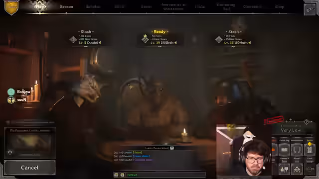 02:12:56Der Streamer beschreibt einen hektischen Kampf, in dem ein Barb mit zwei Badiches (eine zum Werfen, eine zum Kämpfen) ein gefährlicher Gegner ist. Das Team des Streamers hat einen Buff, der 25% mehr Aktionspunkte gibt, was den Nahkampf-Eintrag stark macht. Sie entdecken eine Höhle mit Ausrüstung, die Additional Armor Rating und Fizz Power bietet. Der Streamer betont, dass es eine neue Saison ist und alles neu gewippt wurde. Er ist frustriert, als er bemerkt, dass er eine epische Badische versehentlich in die Wand geworfen hat und sie nicht mehr findet.