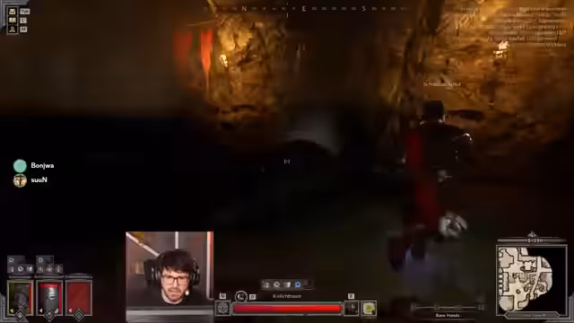 00:00:13Der Stream startet mit technischen Schwierigkeiten, die zu einem Complete Systemabsturz führen. Nach einem Neustart der Hardware und eines Neustarts des Spiels, Dark and Darker, kann der Streamer fortfahren. Der Charakter befindet sich im Spiel auf einer Mission, die das Finden von Räumen namens Cave Patrol und Cave Tombs erfordert. Es wird auf den hohen Gearscore des Charakters verwiesen, der auf 124 gestiegen ist.