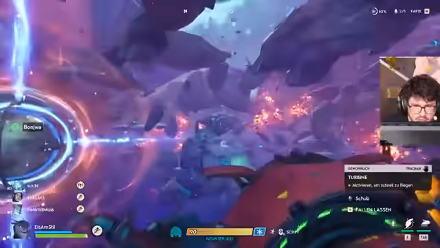 00:22:36Nachdem das Spiel begonnen hat, teilt Marius neu erlernte, effiziente Looting-Strategien mit. Dazu gehört das Anbringen von Klemmungsdüsen an Gegnern ohne sie zu zünden, um mehr Beute transportieren zu können. Es wird über Spielmechaniken wie das Gleiten zur schnelleren Fortbewegung und das Zurücksetzen des Teleports nach einem Treffer gesprochen. Streamer analysiert auch seine eigene Spielweise und erkennt, dass er zu viel läuft und mehr gleiten sollte, um effektiver zu sein.