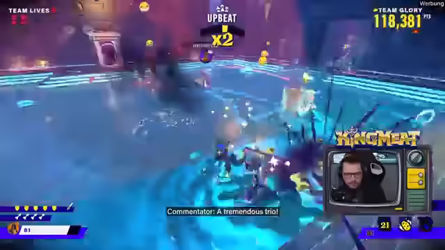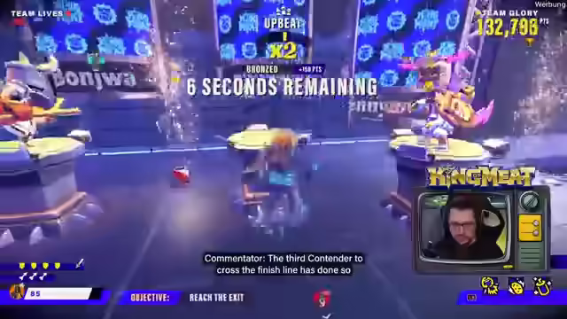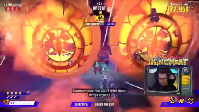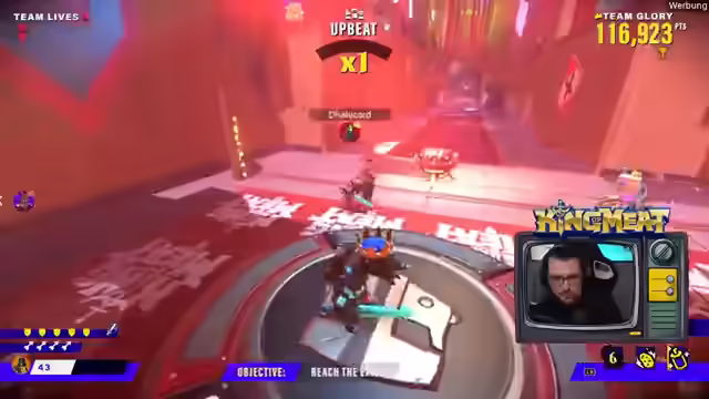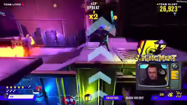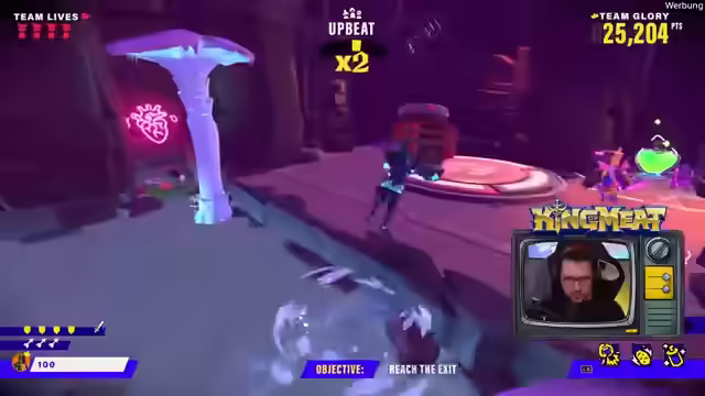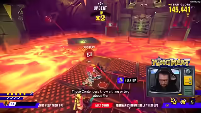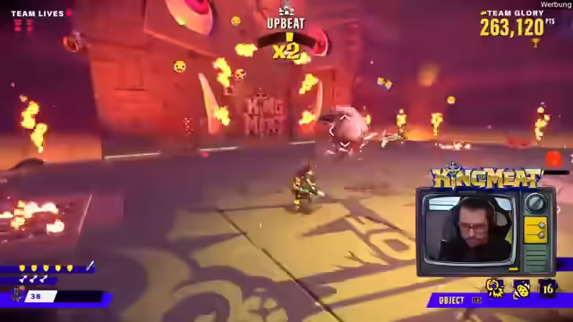00:01:39Es gibt einen exklusiven Twitch-Drop, der beim Giften von zwei Subs erhältlich ist. Das Team nimmt am King of Meat Event in Köln teil und tritt gegen Team Prime an. Es wird um Sound-Feedback gebeten, da das Setup ungewohnt ist. Das Spiel ist ein Koop-Game, in dem es darum geht, zu viert Level zu absolvieren und Punkte sowie Trophäen zu sammeln. Es ist noch unklar, ob es darum geht, schnell Dungeons zu klären oder hohe Punktzahlen zu erzielen. Das aktuelle Level ist ein Jump'n'Run. Um 19 Uhr beginnt die Haupt-Event-Phase. Es wird an den Chat appelliert, Feedback zum Sound zu geben, insbesondere zur Lautstärke des Spiels im Verhältnis zu den Streamern. Das Team versucht, technische Probleme zu beheben, während sie das Spiel spielen und mit dem Chat interagieren. Es wird überlegt, ob die Punkteanzahl vom Sterben beeinflusst wird und das Team möchte einen Run ohne Tode versuchen. Es wird kurz über ein Hardcore-Event gesprochen, aber das Thema wird schnell gewechselt, um nicht über World of Warcraft zu reden.