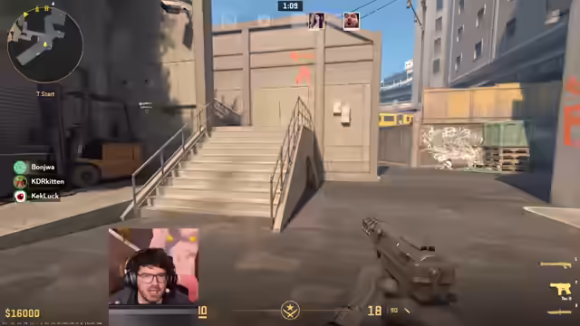 05:21:34Nachdem ein neuer Server bereitgestellt wurde, beginnen die Teams mit taktischen Absprachen für die erste Runde. Es wird diskutiert, welche Waffen gekauft werden sollen und welche Strategie verfolgt wird. Die Entscheidung fällt auf Kevlar für den ersten Mann, und es wird festgelegt, dass je nach Spawn-Punkt entweder A oder B angegriffen wird. Der Plan ist, dass derjenige, der am nächsten ist, zuerst rein geht und eine Flash wirft. Der Start verläuft jedoch chaotisch, mit Friendly Fire und Problemen beim Zielen. Die erste Runde endet in einem Desaster, und es wird analysiert, was schiefgelaufen ist. Für die nächste Runde wird eine neue Taktik besprochen, bei der die Spieler sich zur zweiten Türe schleichen und auf ein Signal warten, um loszusprinten. Es wird versucht, den Gegner mit einer Flash zu überraschen, aber auch dieser Versuch endet im Chaos.