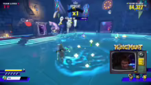00:08:41Das Spiel wird als Hybrid aus Jump'n'Run-Challenges und Battle-Changern beschrieben, ein Koop-Spiel für vier Personen, bei dem es darum geht, Level zu absolvieren und Punkte sowie Trophäen zu sammeln. Es ist noch unklar, ob es darum geht, schnell viele Dungeons zu klären oder mit möglichst hohen Punktzahlen abzuschließen. Das aktuelle Level ist ein reines Jump'n'Run. Es wird über die Bedeutung von Teamwork gesprochen und wie man sich gegenseitig helfen kann, z.B. durch Heilen. Es wird auch über die verschiedenen Fähigkeiten im Spiel diskutiert, wie den Röpza und die heiße Kartoffel, wobei letztere als weniger relevant angesehen wird. Das Team experimentiert mit verschiedenen Strategien, um herauszufinden, wie man am besten Punkte sammeln kann, z.B. ob es einen Unterschied macht, ob man stirbt oder nicht. Es wird festgestellt, dass das Sterben sich negativ auf die Punktzahl auswirkt. Es wird überlegt, ob man Schaden tanken kann, um schneller voranzukommen. Das Team analysiert die Punktzahlen und versucht, die Spielmechaniken zu verstehen, um sich zu verbessern.