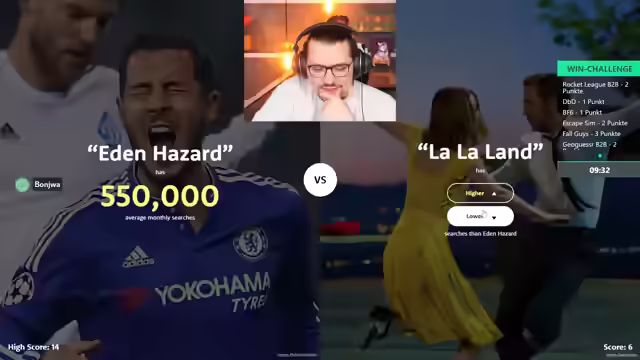 02:56:18Die Streamer bereiten sich auf eine Runde "Higher or Lower" vor, während ein anderes Spiel heruntergeladen wird. Sie diskutieren über die Regeln und den Spielverlauf von "Higher or Lower", einem Spiel, bei dem es darum geht, die monatlichen Google-Suchanfragen zweier Begriffe zu vergleichen. Dabei werden Begriffe wie "Churchill" und "Harlong Bay" verglichen, wobei die Teilnehmer versuchen, die höhere oder niedrigere Anzahl an Suchanfragen zu erraten. Es wird schnell klar, dass Sportbegriffe wie "Oakland Raiders" unerwartet hohe Suchzahlen aufweisen. Parallel dazu wird überlegt, ob "Wer wird Millionär" als Steam-Spiel oder Browser-Version gespielt werden soll, wobei die Entscheidung auf die Steam-Version fällt, um die Wartezeit auf das andere Spiel zu überbrücken.