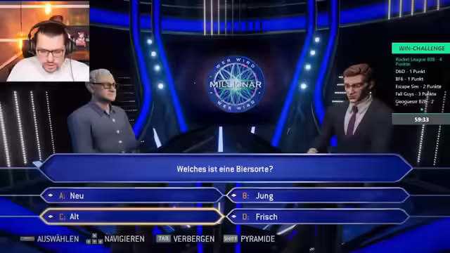 03:59:33Die Diskussion über die fehlerhafte Frage zur Eckfahne bei "Wer wird Millionär" führt zu Frustration, da die falsche Einheit (Meter statt Zentimeter) zu absurden Antwortmöglichkeiten führte. Die Spieler erkennen, dass es sich um einen Fehler im Spiel handelte und nicht um mangelndes Wissen. Diese Erfahrung unterstreicht die Herausforderungen, die durch ungenaue Fragen entstehen können. Nach dieser Episode bereitet sich das Team auf den Übergang zu Fall Guys vor. Die Spieler müssen das Spiel herunterladen und sich in Epic Games adden, um gemeinsam spielen zu können. Die Vorfreude auf Fall Guys ist groß, da es als unterhaltsames und schnelles Spiel gilt, bei dem man schnell eine Krone gewinnen kann. Die Gruppe ist bereit für die nächste Herausforderung und hofft auf einen erfolgreichen Start in Fall Guys.