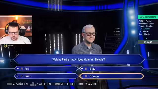 03:45:21Die Gruppe startet eine weitere Runde "Wer wird Millionär" und stößt schnell auf knifflige Fragen. Besonders Sprichwörter erweisen sich als schwierig, da einige der Teilnehmer nicht in Deutschland aufgewachsen sind und mit diesen Redewendungen nicht vertraut sind. Fragen zu Sportmangas wie "Slam Dunk" (Basketball), Superkräften von "Kitty Pryde" (Nicht-Greifbarkeit) und zur Arterhaltung (Nebelschleier) werden diskutiert. Die Spieler müssen ihr Allgemeinwissen und ihre Fähigkeit, logische Schlüsse zu ziehen, unter Beweis stellen. Eine besonders kuriose Frage betrifft die Höhe einer Eckfahne, die aufgrund einer fehlerhaften Übersetzung im Spiel (Meter statt Zentimeter) für Verwirrung sorgt und die Gruppe zu einer längeren Diskussion über die Plausibilität der Antworten zwingt. Trotz der Schwierigkeiten versuchen sie, so viele Fragen wie möglich richtig zu beantworten, um die Wartezeit auf Fall Guys zu überbrücken.