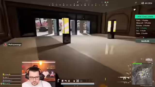 04:30:18Die Spieler reflektieren über ihre Leistung und die Erwartungen an jedes Teammitglied. Ein Spieler nimmt die Schuld für eine verlorene Runde auf sich, während die anderen betonen, dass es wichtig ist, als Team zusammenzuhalten. In einer weiteren Runde, einer Basic Map, versuchen die Spieler, langsam und sicher zu spielen. Die Möglichkeit, Gegner durch das Schießen von Bällen zu sabotieren, wird erkannt. Trotzdem scheiden einige Spieler aus, und es wird festgestellt, dass viele Bots in der Lobby sind. Die nächste Herausforderung ist der „Wirbel“, bei dem die Spieler ständig in Bewegung bleiben müssen, um nicht von einem Ventilator von der Map gepustet zu werden. Die Zeit wird knapp, und die Spieler hoffen auf einen Back-to-Back-Sieg, um die Challenge zu gewinnen.
