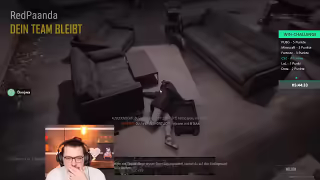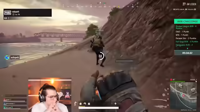00:24:32Um 17 Uhr startet eine besondere 'Versus-Win-Challenge'. Es treten zwei Viererteams gegeneinander an: ein Team, das vom Streamer selbst zusammengestellt wurde, und ein Team von Kroko. Das Team des Streamers besteht aus Edo, Mayo (bekannt vom Pizmi-Turnier) und Zun. Kroko hat Vasily, Niek (Gooby Fortnite), sich selbst und Fyster in seinem Team, wobei Niek kurzfristig durch Kim ersetzt wurde. Ziel ist es, innerhalb einer festen Zeit die meisten Siege zu sammeln. Die Spiele werden unterschiedlich gewichtet, da ein Sieg in League of Legends oder Battlefield nicht so schwer zu erreichen ist wie beispielsweise ein 'Check-Ninner' in PUBG. Es wird betont, dass es nicht darum geht, alle Spiele zu schaffen, sondern besser als das gegnerische Team zu sein.