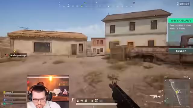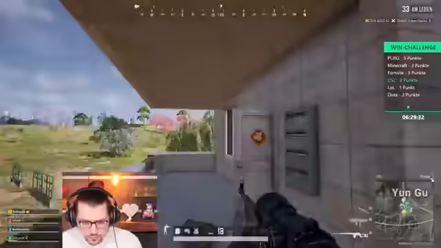 06:47:19Die erste Runde PUBG beginnt mit der Diskussion über die Landezone. Die Spieler entscheiden sich für Hung Chan, um dort zu kämpfen. Es wird erwähnt, dass das Flugzeug den Namen „Übermensch“ trägt, was auf den Albumtitel einer K-Pop-Band zurückgeführt wird. Beim Landeanflug stellen die Spieler fest, dass mehrere Teams in ihrer Nähe landen. Ein Spieler landet abseits und muss von den anderen abgeholt werden. Es kommt zu einem frühen Kampf, bei dem die Spieler schnell eliminiert werden. Die technische Probleme eines Spielers mit „Micro-Lags“ werden als Ursache für die Niederlage genannt. Die Spieler beschließen, eine weitere Runde zu starten und besser zusammenzulanden. Es wird auch über die „Ehre“ im Spiel diskutiert, insbesondere im Hinblick auf frühere Siege, die durch AFK-Gegner oder Stream-Sniper zustande kamen.