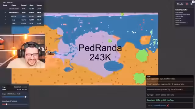 01:20:20Der Stream beginnt mit einer dynamischen Spieldynamik, in der mehrere Spieler, darunter Edo und Ranger, um territoriale Kontrolle konkurrieren. Es werden Pläne besprochen, um bestimmte Gegner wie Fischi gezielt anzugreifen und Ressourcen wie Raketen für gezielte Aktionen einzusetzen. Spielerische Spannungen werden deutlich, als Edo durch seine Aggression massiv an Macht gewinnt und vorübergehend 40% der Welt beherrscht, was zu Frustration bei den anderen Spielern führt.