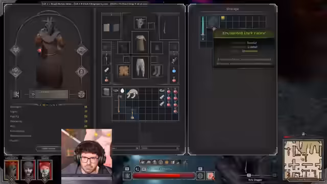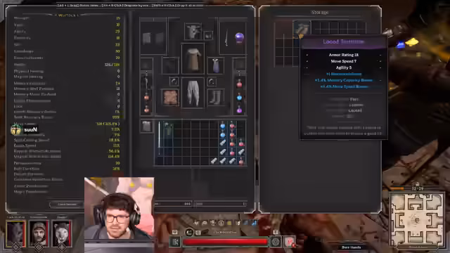 05:17:26The streamer explores different areas, finding and evaluating loot such as arrows, clubs with good rolls, and Legendary Pickaxes. Discussions arise about the value of gear like wolf pelts and the potential for player skin drops. They debate weapon preferences, comparing crossbows and bows, and analyze stat rolls on items like shoes for move-speed and armor for strength. The conversation also touches on game economy, crafting recipes like Demon Blood, and the importance of managing inventory slots efficiently.