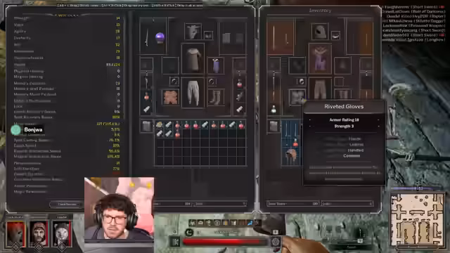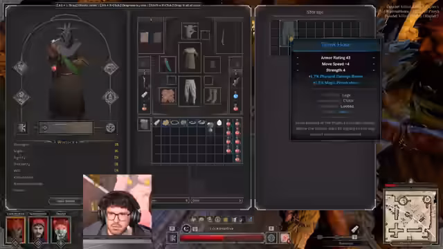 00:00:02Der Stream beginnt mit der Diskussion über die Spielwahl. Zunächst wird das Spielen von 'Equipped' erwogen, später aber 'Squire to Riches'. Der Streamer kündigt an, dass er seinen Stash für den Verkauf ausräumen möchte, da er im normalen Modus vollständig offene Ausrüstung nutzen kann. Die Unzufriedenheit mit fehlenden Teilen wie einem Lederschmied-Hut wird geäußert und das Potential der Ausrüstungs-Lobby für starken Gear-Farm diskutiert.
