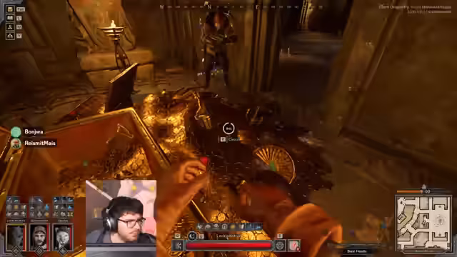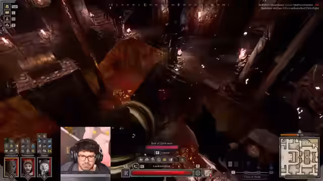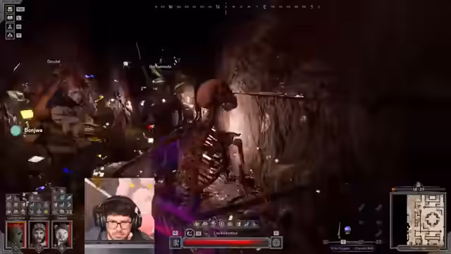 00:22:41Es geht um den Warlord-Boss, dessen Killer spawntrapped werden könnten, aber ein Versuch scheitert. Der Streamer wird von Fledermäusen getötet und erwähnt einen Double-Jump. Die Erkundung führt zu einem Treasure-Room, wo Player-Skelette und weitere Gegner auftauchen. Ein Kämpfer wird mit einem Bolt und einem Curse getroffen. Die Gruppe diskutiert, ob sie gegen einen Solo-Rogue kämpfen oder weiterflüchten. Es wird auch die Quest für stärkere Mobs angesprochen, wobei klargestellt wird, dass dies nicht von Quests abhängt, sondern von High-Roller-Modus und Affinity. Die Verwendung eines 'Furz'-Skills wird humorvoll erwähnt.