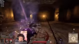 02:46:40Das Team gerät in einen Konflikt mit einem anderen Spieler in einem engeren Raum. Ein Barbared mit Power of Sacrifice blockt, ein Wizard feuert Fireballs, und ein Ranger greift aus der Ferne an. Es kommt zu einem heftigen Kampf, in dem das Team mehrere Gegner tötet, aber auch selbst Verluste erleidet und sich aus dem Gefecht zurückziehen muss, um sich zu heilen.
