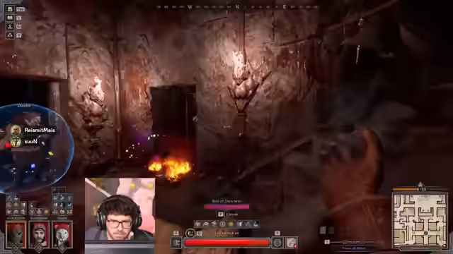 05:05:23Eine entscheidende Konfrontation ereignet sich am Brückenraum. Das Team gerät in einen Hinterhalt eines gegnerischen Teams, das aus Cleric, Fighter und Ranger besteht. Nach einem langen und brutalen Kampf mit viel Schadensaustausch, in dem der Streamer 'epische Heiltränke' einsetzt, gelingt es dem Team, den Gegner zu besiegen. Der Streamer beschreibt den Kampf als 'krass' und den Damage des gegnerischen Longbow-Fighters als 'macht den Damage'.'