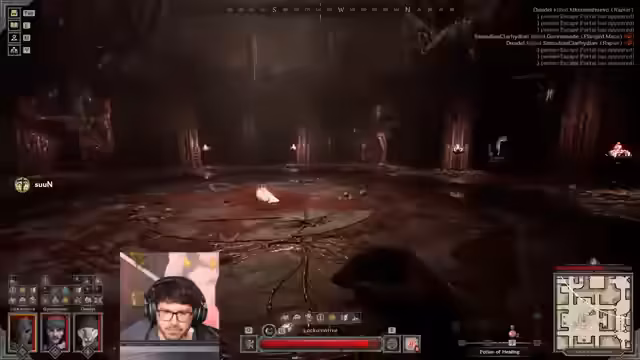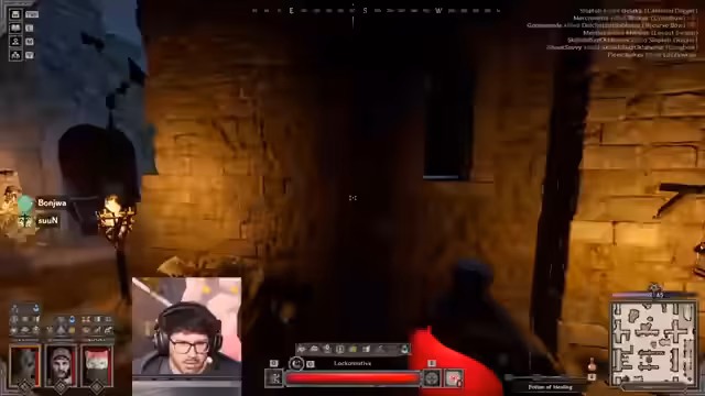 02:44:38Die Gruppe beginnt mit der Erkundung eines Dungeons, identifiziert NPCs und Gegner in verschiedenen Räumen. Sie diskutieren mögliche Gegner im Kreisraum, vermuten einen Player-Skeleton-Champion, und kämpfen gegen einen Rogue und einen Caster. Die Koordination ist chaotisch, da die Spieler sich aufteilende Gegner beobachten und versuchen, gemeinsam anzugreifen. Zeitweise verlieren sie den Überblick über die Positionen und müssen sich zurückziehen, um nicht überwältigt zu werden.