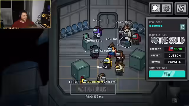 Beginn des Among Us-Spiels und Vorstellung der Teilnehmer