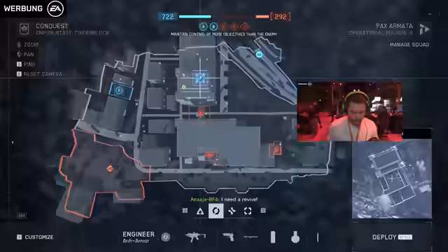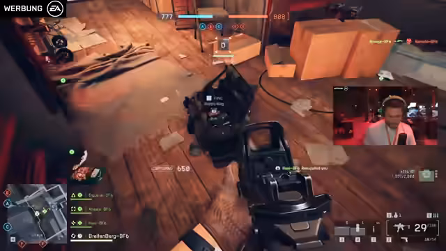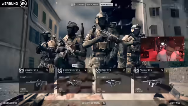 01:55:01Zu Beginn des Streams werden diverse Gameplay-Momente kommentiert. Der Streamer bemerkt, dass einige Gegner bessere Waffen zu haben scheinen und ist unsicher über die Waffen-Upgrades und die Klassensysteme. Er experimentiert mit verschiedenen Waffen wie der SGX und der Antiarme, fühlt sich aber oft im Nachteil und diskutiert intensiv mit dem Chat, um herauszufinden, was er falsch macht. Das Gameplay fühlt sich an wie die alten Teile der Battlefield-Serie, was positiv bewertet wird.