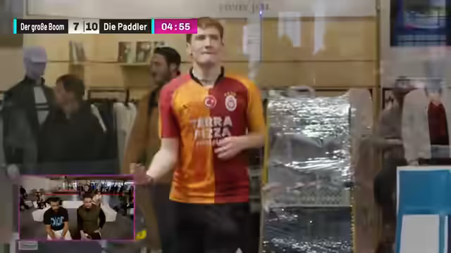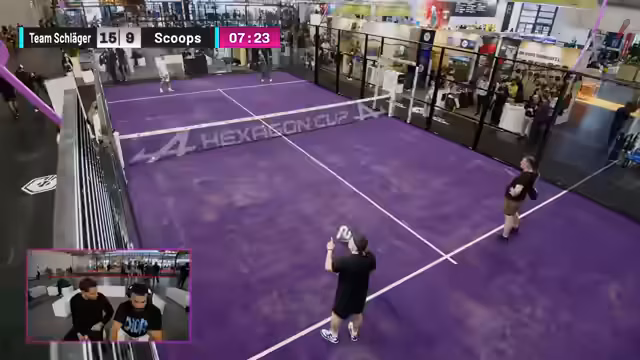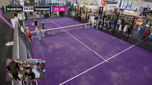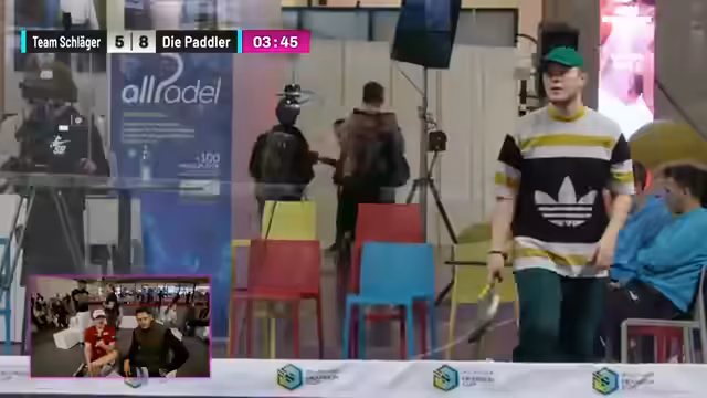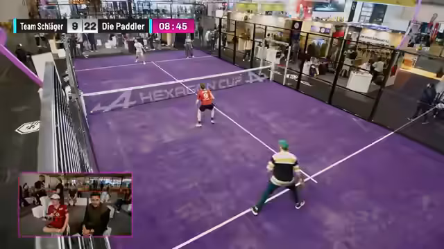 01:54:03Das Spiel zwischen Team Squabs und Team Schläger nimmt an Fahrt auf, obwohl die Kommentatoren anfangs mehr Action erwartet hatten. Es wird erwähnt, dass die Spieler gut versorgt wurden, was die Erwartung an ihre Leistung steigert. Während des Spiels kommt es zu humorvollen Unterbrechungen durch Messebesucher, die das Spielfeld betreten, was die Notwendigkeit einer besseren Sicherung des Bereichs unterstreicht. Technische Probleme beim Starten eines gemeinsamen Chats werden angesprochen. Die Zuschauer werden auf die sich aufwärmenden Teams Knirps und Fassler gegen Sophia und Ronny hingewiesen. Jensen zeigt eine starke Leistung, während Zoe noch nervös wirkt. Ein hinterhältiger Angriff auf Fitness Oskar wird als taktisches Manöver im Padel-Tennis gelobt. Der aktuelle Punktestand wird diskutiert, wobei Team Schläger das Tempo angezogen hat und möglicherweise die Führung übernimmt. Die Bedeutung von Respekt und Fairness im Sport wird hervorgehoben, insbesondere im Kontext von Verletzungen und dem Begriff 'sportlich'.