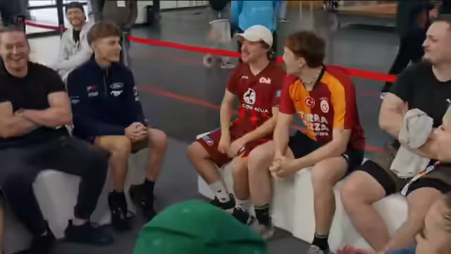 01:13:37Nach dem zweiten Spiel findet eine Feedback-Runde statt, in der die Spieler ihre Eindrücke teilen. Team Squabs, die Gewinner, äußern sich zufrieden und betonen ihren Teamgeist. Sie haben das Gefühl, sich noch eingrooven zu müssen, sind aber zuversichtlich, das Turnier zu gewinnen. Die Verlierer, Team Peddler, zeigen sich ebenfalls zufrieden mit ihrer Leistung als Erstspieler und den erreichten 13 Punkten, die sie auf Platz 2 der Gesamtwertung positionieren. Sie erkennen die Notwendigkeit, sich weiter einzuspielen, um noch bessere Ballwechsel zu erzielen. Ein Spieler erwähnt, dass er in zwei Tagen 30 wird und die sportliche Aktivität genießt. Die Moderatoren geben den Teams den Tipp, sich mehr zu bewegen, da dies in den ersten beiden Spielen zu wenig der Fall war. Für das nächste Spiel zwischen Team 1 (Der große Boom) und Team 5 (Tornado Speed) werden Taktiken besprochen. Team 5 hat den Vorteil, bereits eingespielt zu sein. Die Spieler äußern sich zu ihren Strategien, wobei Team 3 plant, schneller zu spielen, um mehr Punkte zu erzielen, und Team 2 sich auf die Technik und die letzten Minuten konzentrieren will. Die Moderatoren betonen die Bedeutung von Geschwindigkeit, um einen Vorteil gegenüber anderen Teams zu erzielen.