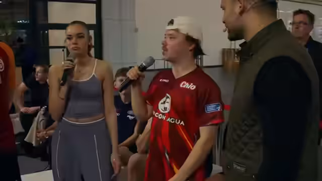 00:22:34Nach einer kurzen Einführung und der Bestätigung, dass es kein Rollenspiel (RP) geben wird, beginnt das Showmatch der deutschen Padel-Tennis-Nationalmannschaft. Die Profis demonstrieren beeindruckende Spielzüge und Taktiken, wobei sie den Ball oft über die Bande spielen, um ihre Gegner zu ermüden. Ein verletzungsbedingter Ausfall eines Profis führt dazu, dass ein Ersatzmann einspringt, um das Zwei-gegen-Zwei-Format beizubehalten. Die Zuschauer erhalten so einen Einblick in das hohe Niveau des Sports. Breitenberg und Edis kommentieren das Spielgeschehen und loben die Produktionsqualität mit den dynamischen Kamerawechseln. Nach dem Showmatch werden die Influencer für die Teamzusammenstellung versammelt. Es wird beschlossen, die zwei Damen, Sophia und Zoe, mit den vermeintlich stärksten Männern zu paaren, um faire Teams zu gewährleisten. Fitness-Oskar, der seinen eigenen Schläger mitgebracht hat, wird als potenzieller Profi eingestuft. Nach einigen Diskussionen und dem Wunsch der Spieler, ihre Partner selbst zu wählen, werden die Teams wie folgt festgelegt: Team 1 'Der große Boom' (Sophia & Ronny Berger), Team 2 'Team Schläger' (Zoe & Fitness-Oskar), Team 3 'Team Scorps' (Vasily & Jensen), Team 4 'Die Paddler' (Fassler & Knirps) und Team 5 'Team Tornado Speed' (Max Reis & Ron Belicki).