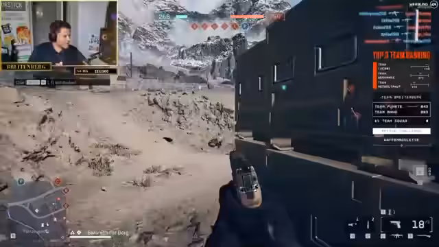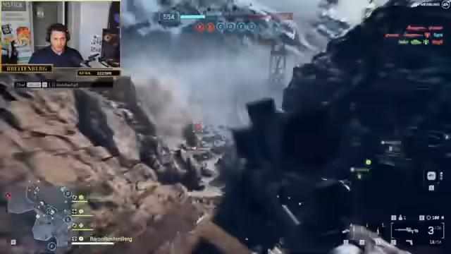 00:14:47Nach einigen Spielminuten teilt der Streamer seine ersten Analysen. Er ist von der Battlefield-DNA, der Zerstörung und dem authentischen Gefühl des Spiels begeistert und fühlt sich an die alten Teile der Serie erinnert. Er kritisiert seine anfänglichen Schwierigkeiten mit den Waffen und dem Handling, das ihm zu unpräzise erscheint. Dennoch ist er von der Spielmechanik, dem Sounddesign und der generierten Atmosphäre der großen Schlachten sehr angetan.